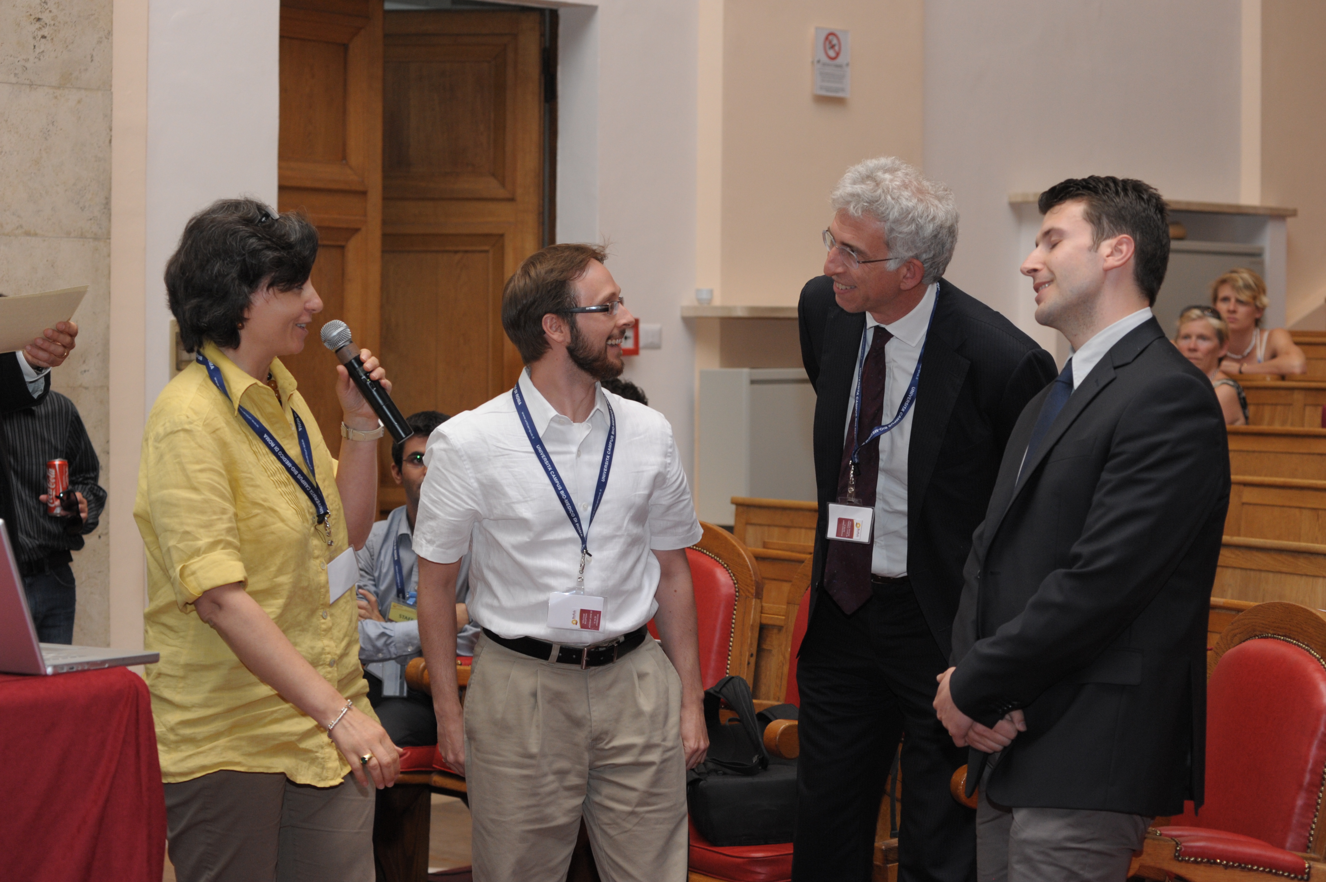 - Best Application Paper Award at the 2008 IEEE/RSJ International Conference on Intelligent Robots and Systems (IROS 2008) for the paper Collision detection and reaction: A contribution to safe physical human-robot interaction (by S. Haddadin, A. Albu-Schäffer, A. De Luca, G. Hirzinger) ---see [C-105] in the list of publications (Nice, France, September 2008). [ceremony pictures: without me and with me (...blurred)]