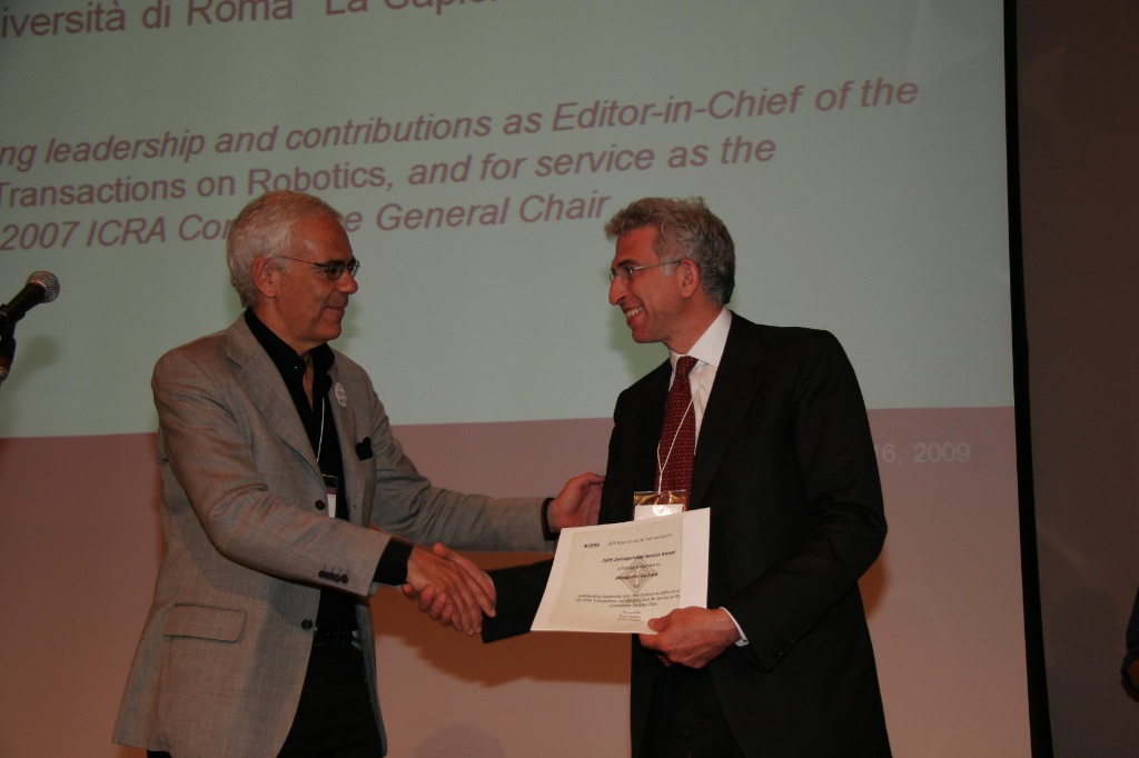 - 2009 IEEE-RAS Distinguished Service Award. Citation: "For outstanding leadership and contributions as Editor-in-Chief of the IEEE Transactions on Robotics, and for service as the ICRA 2007 General Chair" (April 2009). [ceremony picture]
