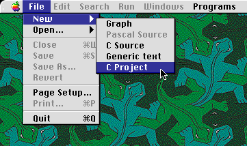 Now we have to create a new C project. Launch Leonardo's application from the Finder and choose New + C Project from the File menu: