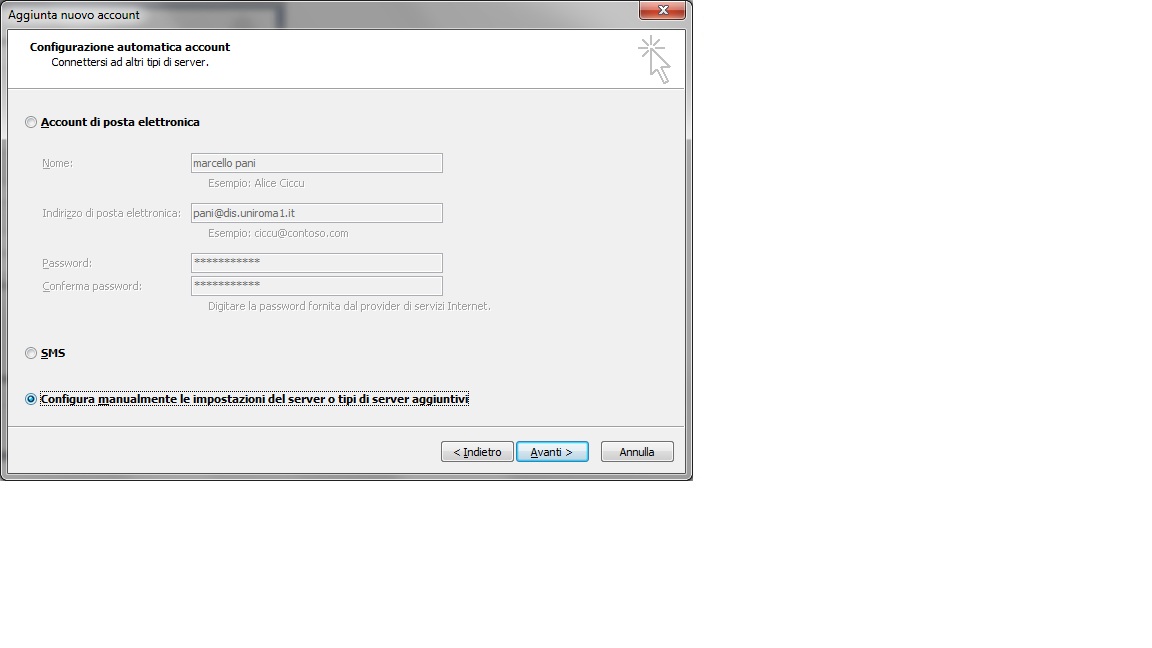 | selezionare l'opzione configurazione manuale → Avanti |