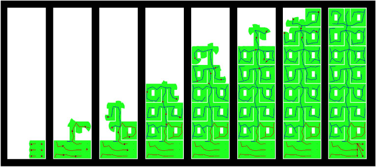 Note how the robots assume different colors during the exploration: