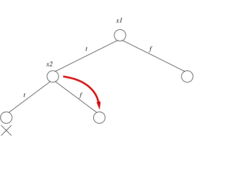 backtrack to node labeled x3