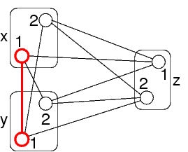 La variabile x è arc-consistent rispetto al vincolo se ogni valore per x ha un corrispondente valore di y tale che i due valori soddisfano il vincolo: