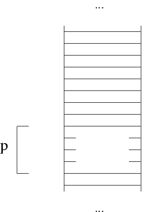 La fingura qui accanto mostra lo stato della memoria dopo la creazione della variabile: l'unica zona di memoria attualmente riservata è quella che corrisponde a p. Il valore in essa contenuta è tuttora indefinito. |