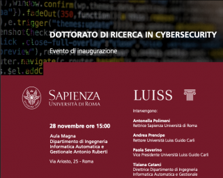 Prende il via il Dottorato di Ricerca in Cybersecurity, programma erogato da Sapienza Università di Roma in collaborazione con l'Università Luiss Guido Carli.