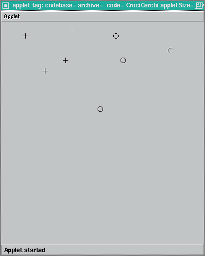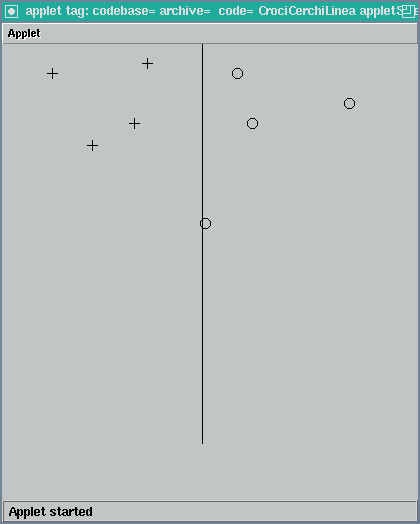 Supponiamo per esempio di voler modificare l'applet CrociCerchi.java che disegna una croce se si fa click in un punto con x<=200 e un cerchio altrimenti. Vogliamo tracciare una linea sul confine fra i punti dove si disegnano le croci e i punti dove si disegnano i cerchi.