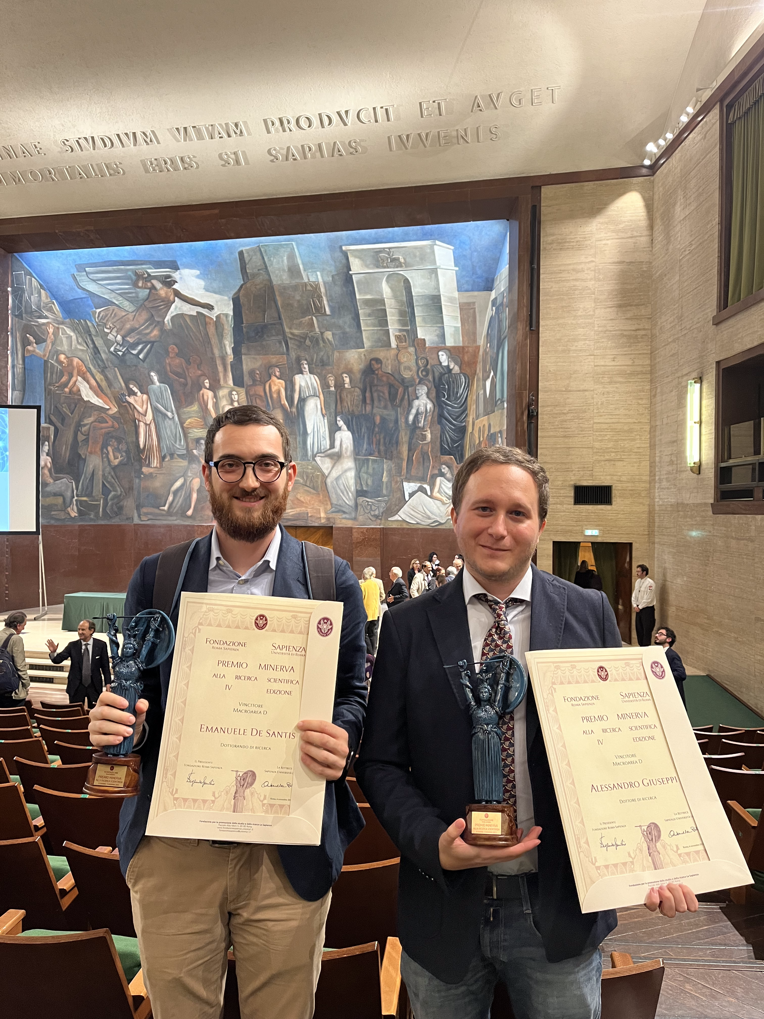 Emanuele De Santis (ABRO XXXV) e Alessandro Giuseppi (ex-ABRO XXXII, già vincitore della precedente edizione), entrambi attualmente Ricercatori nel corso di laurea di Ingegneria Automatica della Sapienza, sono risultati vincitori della quarta edizione del premio Minerva rispettivamente come miglior dottorando e miglior dottore di ricerca per la macro-area D "ingegneria ed architettura".