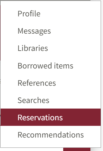 1 - After logging in with your credentials on the Sapienza Catalogue platform, from the drop-down menu that appears under the username, select RESERVATIONS.