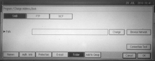 6. Inserire nella casella di testo Path il percorso completo della directory remota, in alternativa è possibile effettuare il browsing della rete locale, selezionare la propria macchina e navigare fino alla directory scelta toccando [Browse Network]