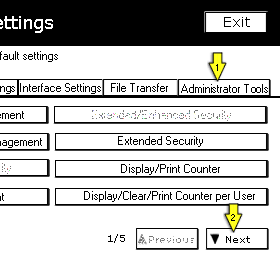 3. Premere la tab [Administrator Tools] in seguito toccare [Next] per visualizzare la seconda pagina del menu.