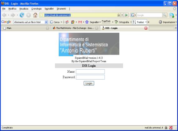 | Collegarsi a https://mail.dis.uniroma1.it → Inserire Nome Utente e Password → Login |